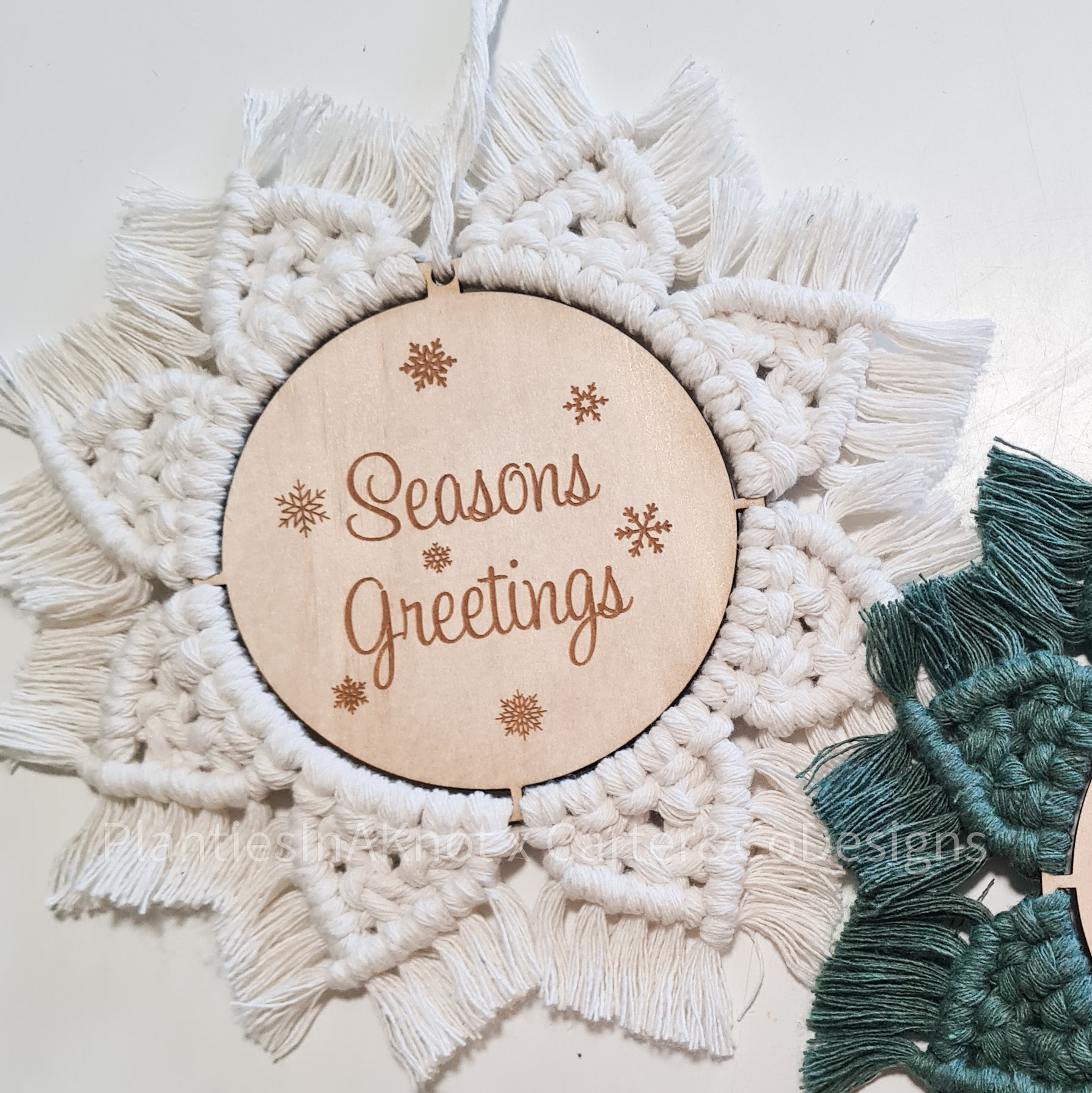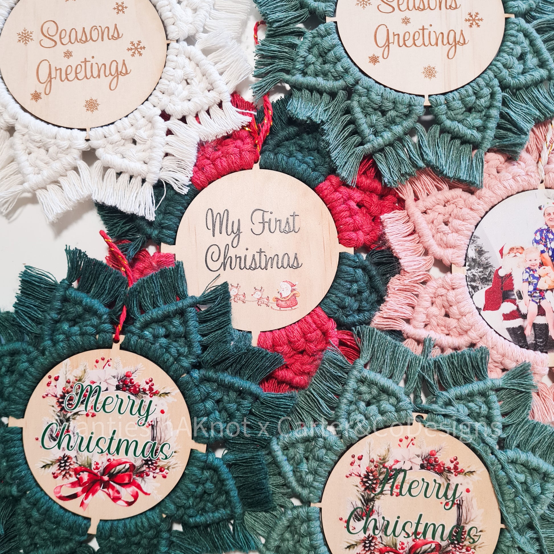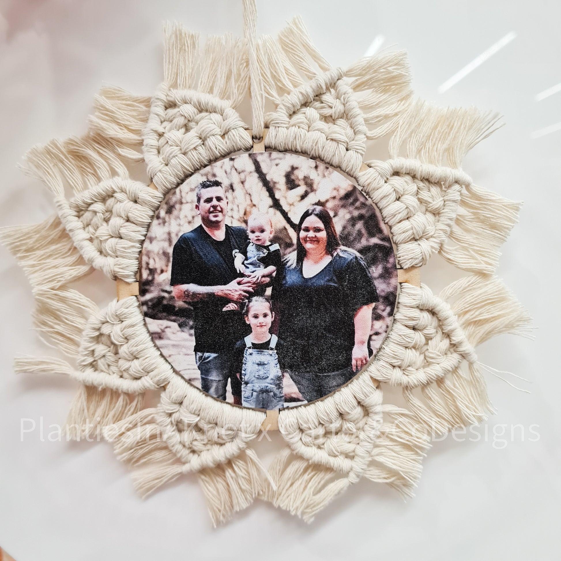 There is 4 options to choose from. The chosen design is either engraved or UV printed onto the timber, the macrame is knotted straight onto timber.