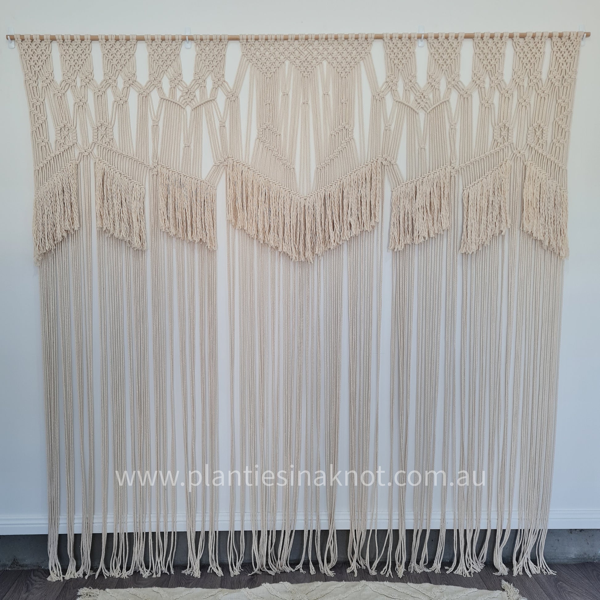 Size: 2.1m wide (wooden dowel length) x 2.1m long (dowel to bottom)