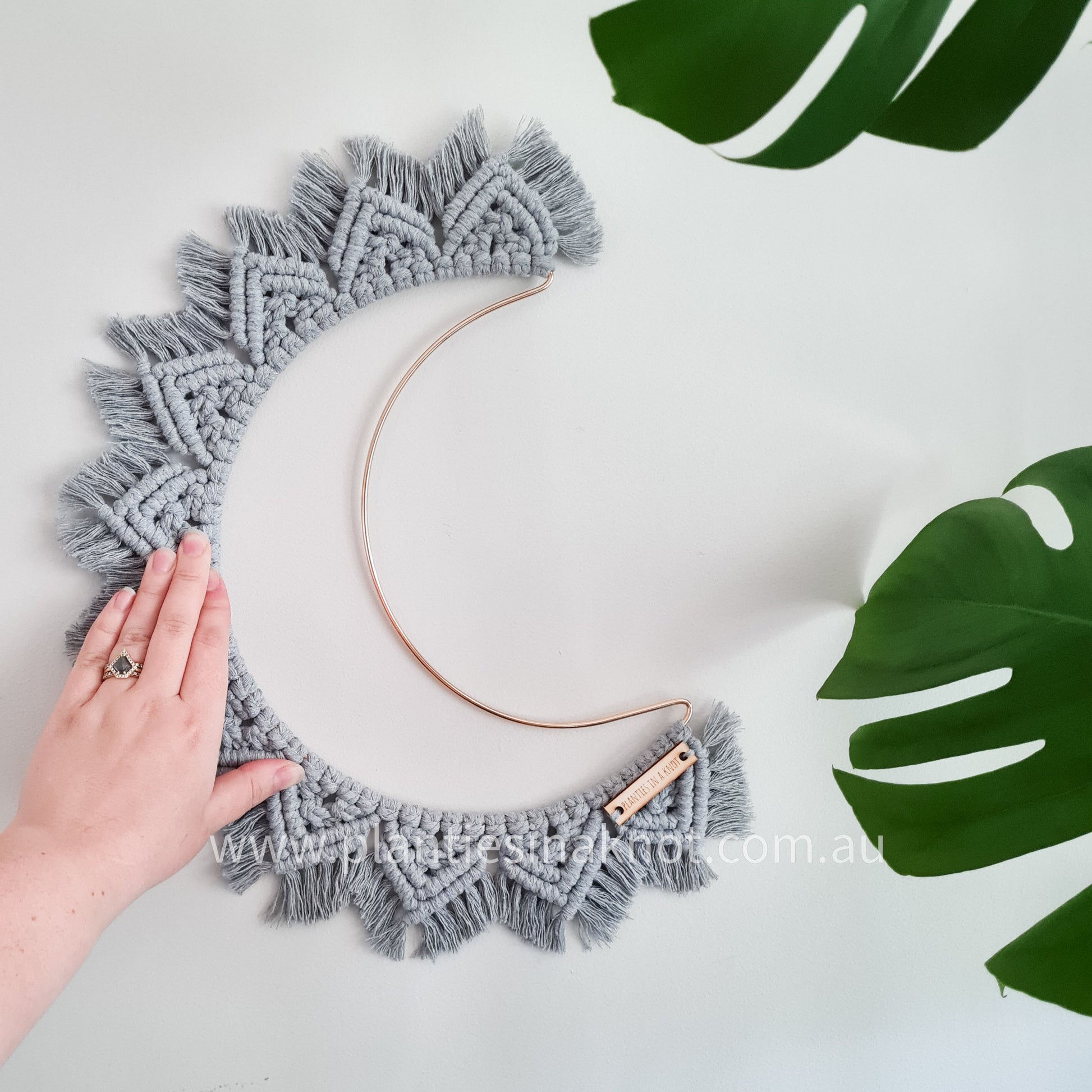 Sizing: These moons made on a metal frame range between 40 - 44cm wide x 28 - 32cm long.