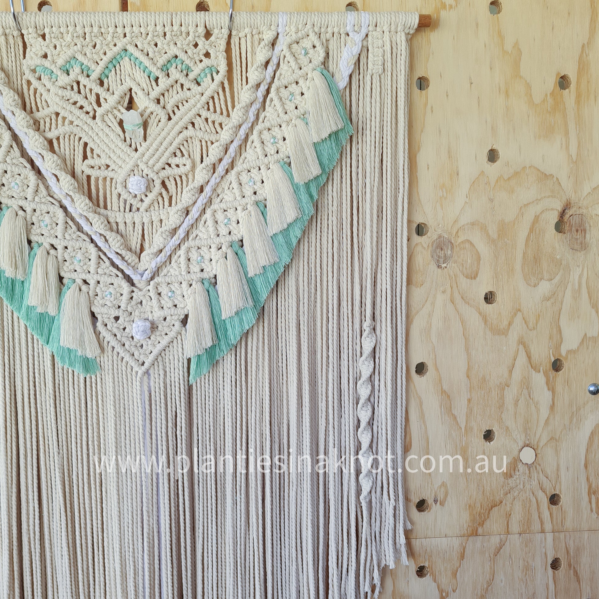 Size: On a 80cm Tasmanian Oak Dowel (w) & approx 120cm long. Clear Quartz crystal included. Choose up to 3 colours. Please refer to last picture for number references for multiple colours. We will contact you if we need clarification.