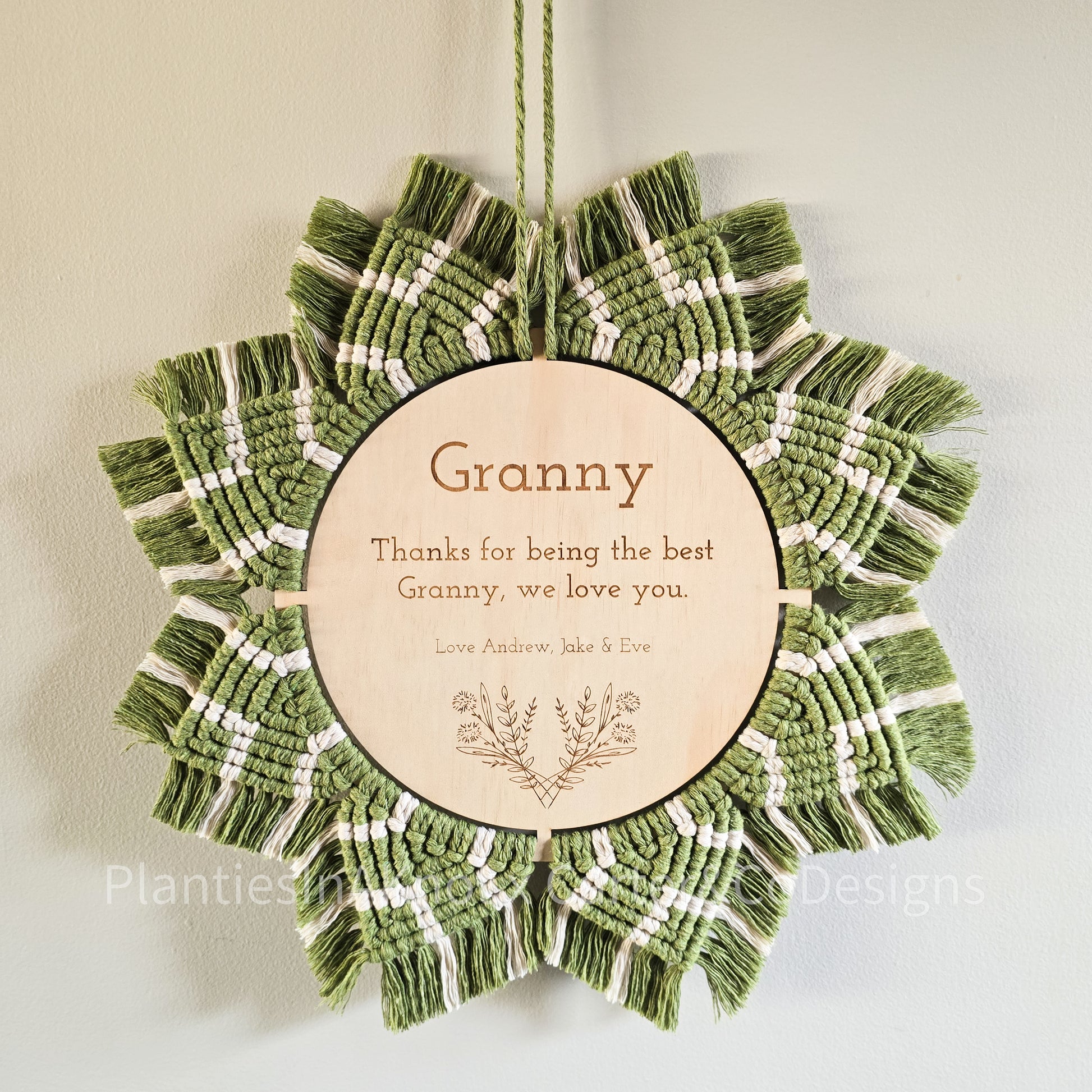 Style your home or give the perfect gift with the Name & Quote Wreath! Add a name and a personalised message to craft a unique statement piece that will stand out in any room. This wreath allows you to customise with ease; simply choose your colours, and text and watch our socials to see your special creation come to life!