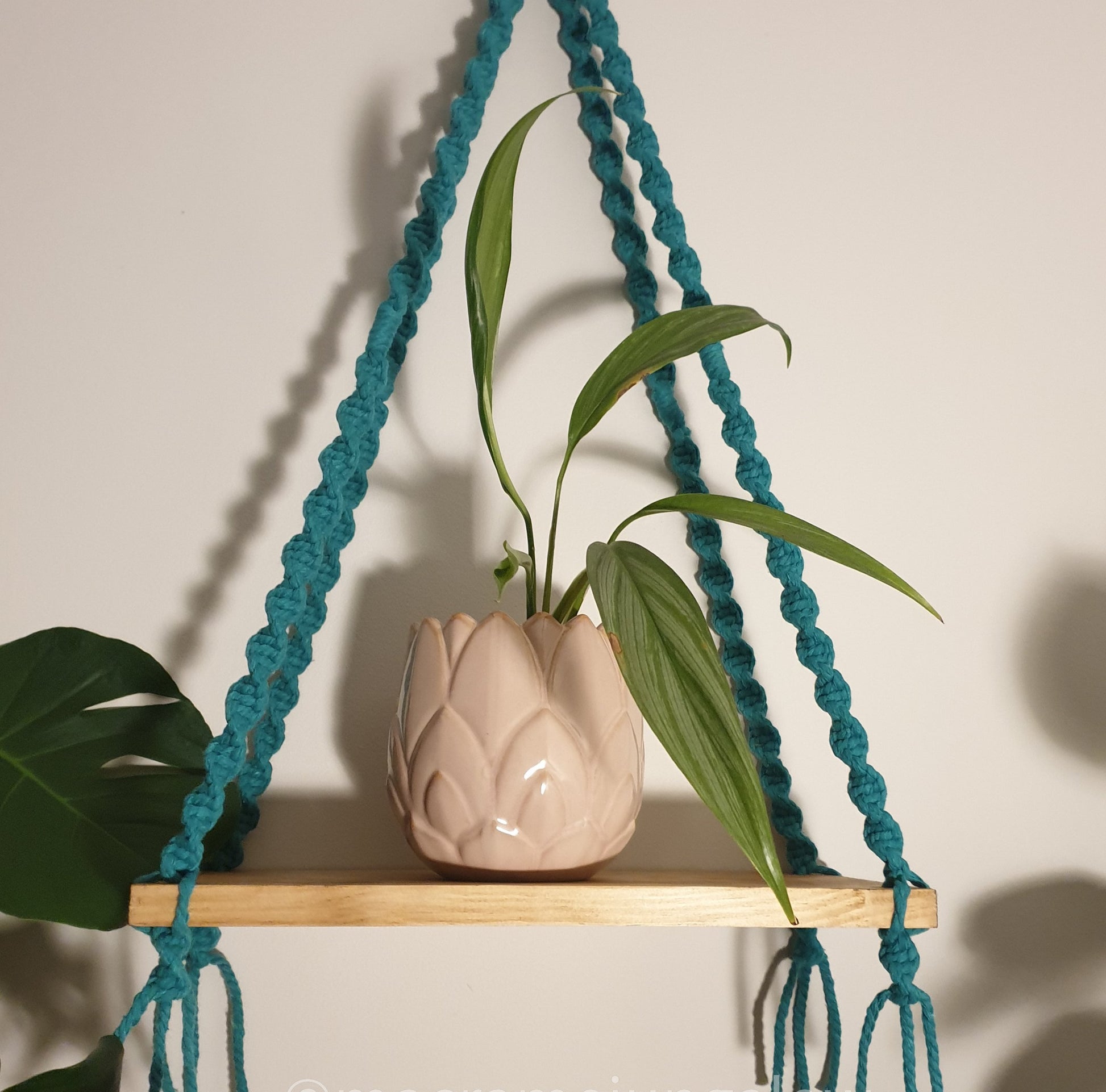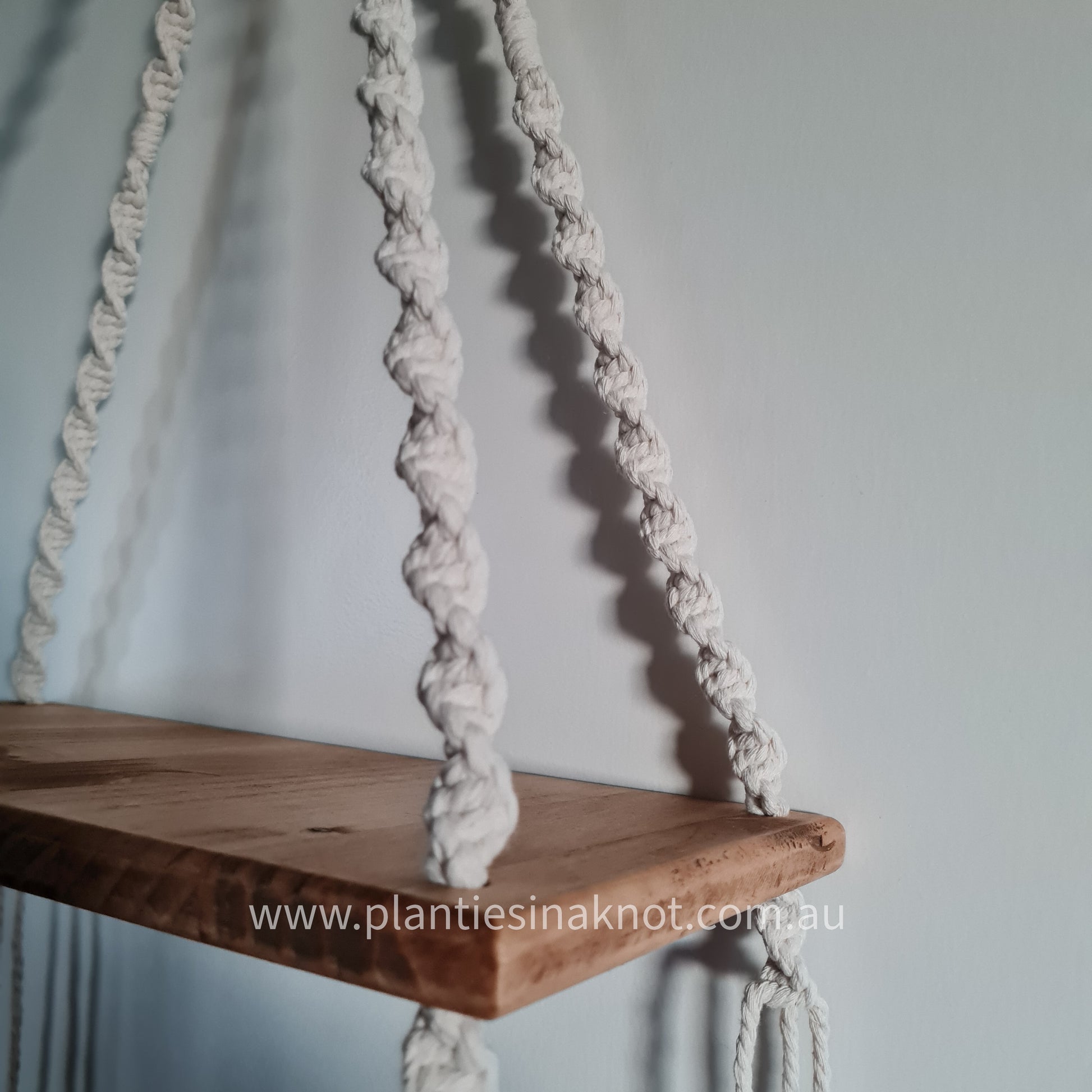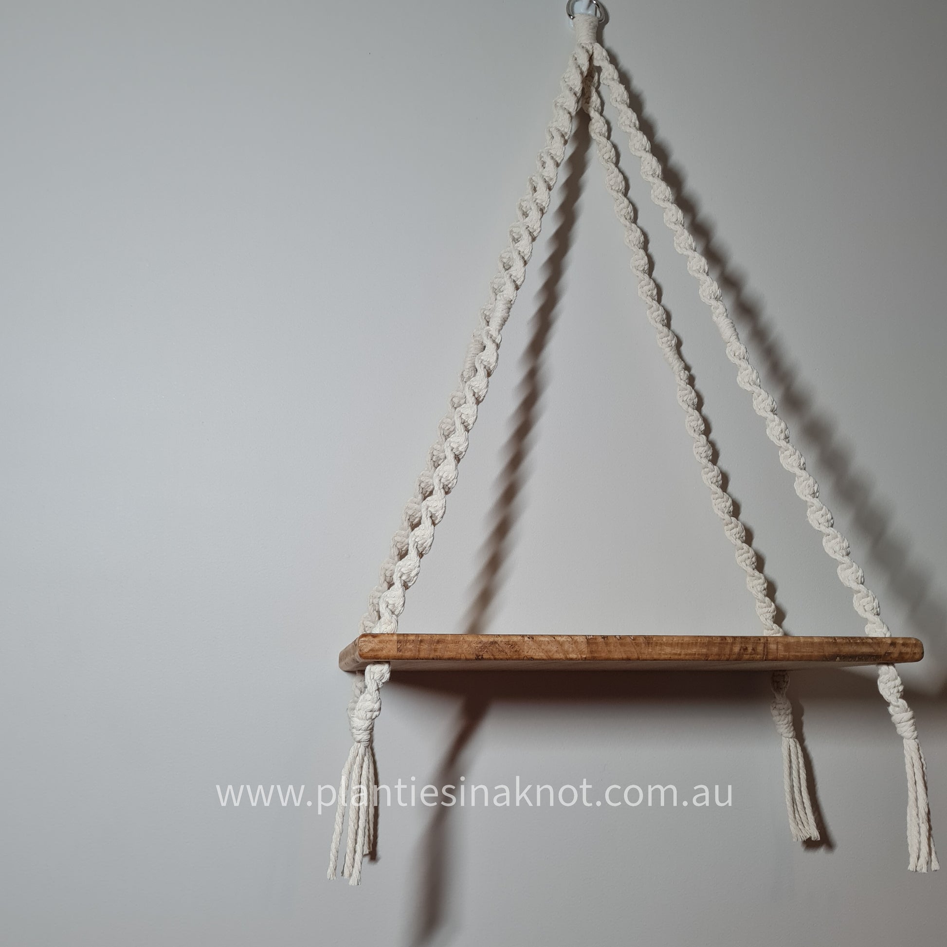 The Sarah Shelf has only one point for hanging, meaning this shelf has the possibility to swing side to side. It is best hung with support under the wooden shelf or out of reach from children and animals.
