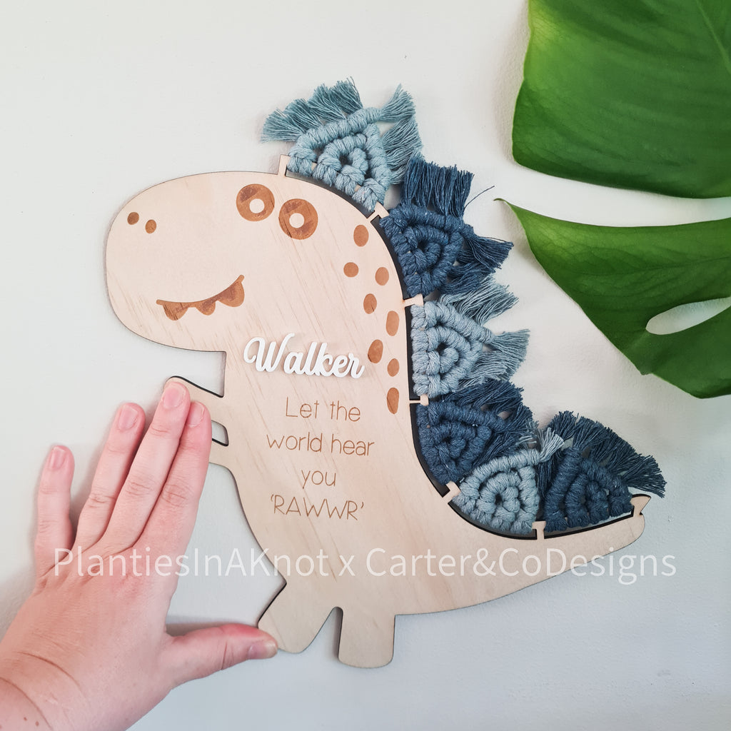 Macrame Dinosaur. Laser Engraved. Personalisation Optional.